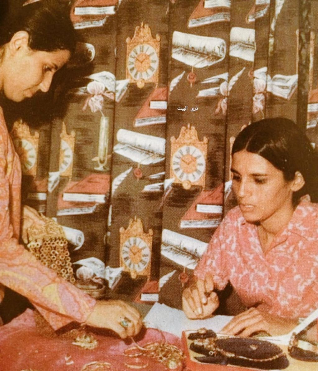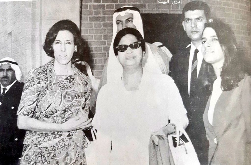 كوكب الشرق ام كلثوم فى قصر السيف وبرفقتها لولوة القطامي ونوار ملا حسين التركيت (يميناً) عام ١٩٦٨