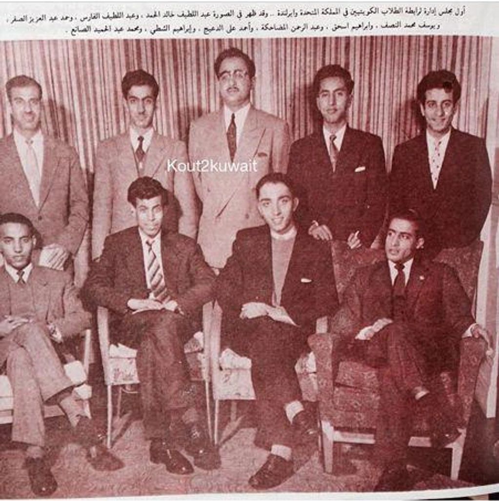 أول مجلس إدارة لرابطة الطلاب الكويتيين في المملكة المتحدة وايرلندا، وقد ظهر في الصورة عبداللطيف خالد الحمد، عبداللطيف الفارس، حمد العبدالعزيز الصقر، يوسف محمد النصف، ابراهيم اسحق التركيت، عبدالرحمن المضاحكة، أحمد علي الدعيج، ابراهيم الشطي، ومحمد عبدالحميد الصانع