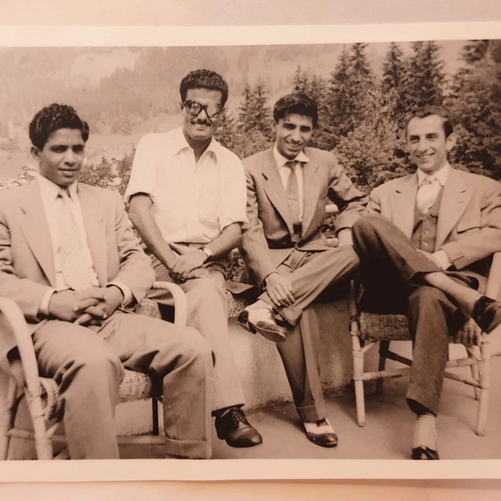 صورة التقطت في الاسكندرية عام 1964 تجمع الأمير الراحل الشيخ عبدالله السالم والأمير الراحل الشيخ جابر الأحمد والأمير الراحل الشيخ صباح الأحمد والشيخ مبارك عبدالله الجابر وعبدالعزيز حسين التركيت