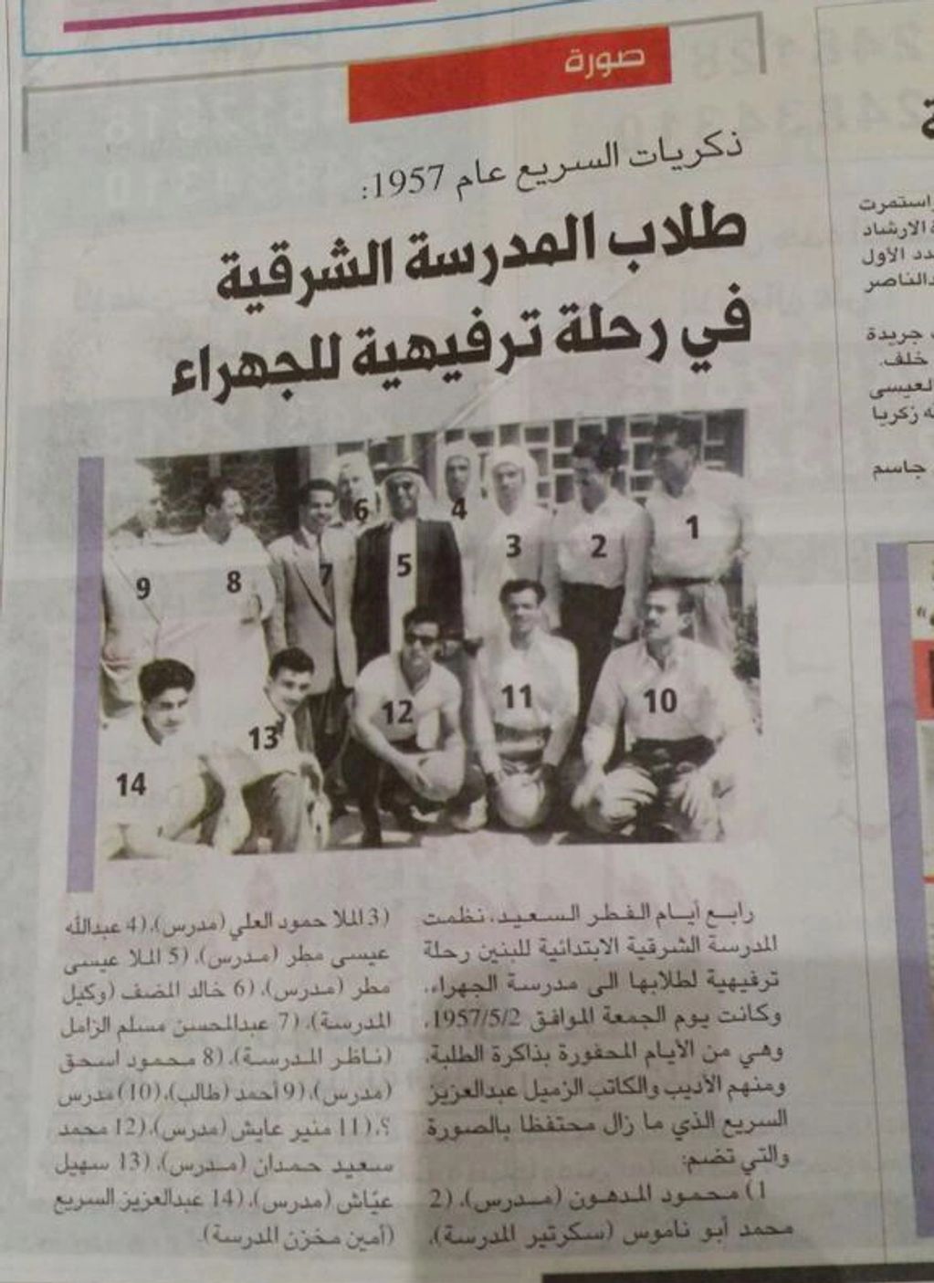 طلاب المدرسة الشرقية في رحلة ترفيهية للجهراء سنة 1957، رقم 8 المرحوم محمود اسحق التركيت