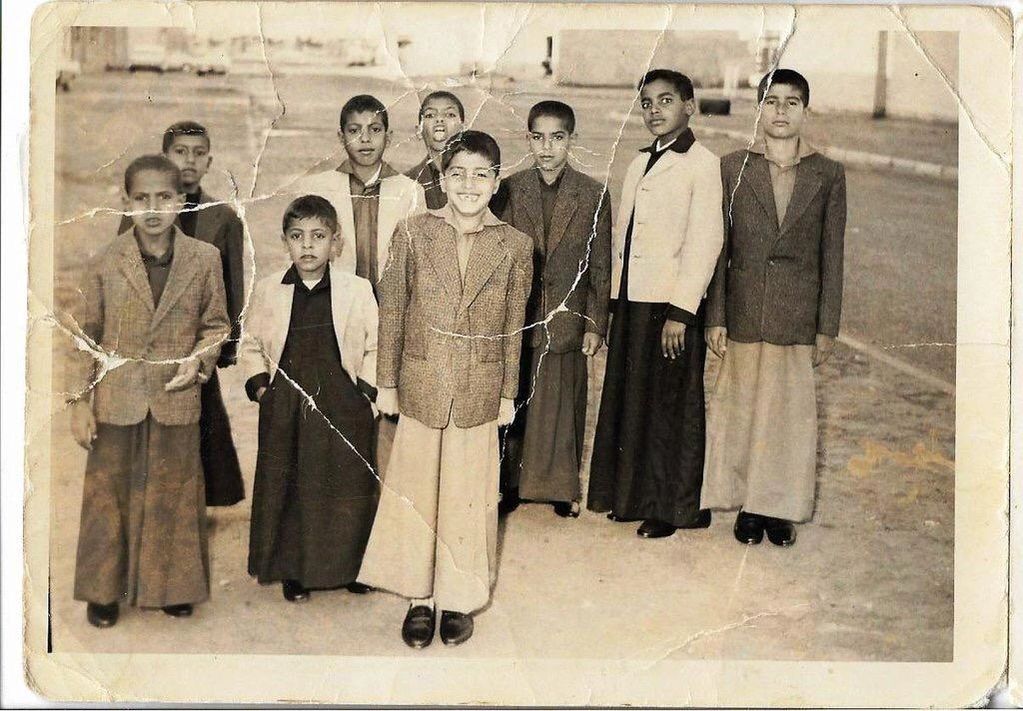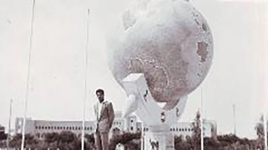 أمام مجسم الكرة الأرضية بثانوية الشويخ سنة 1955م